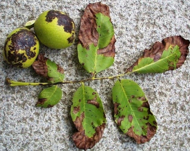 بیماری شایع در گردو که سال به سال بدلیل عدم رعایت بهداشت باغی ( عدم جمع کردن بقایای برگ و میوه های الوده و سیاه کف باغ) بیشتر می شود.