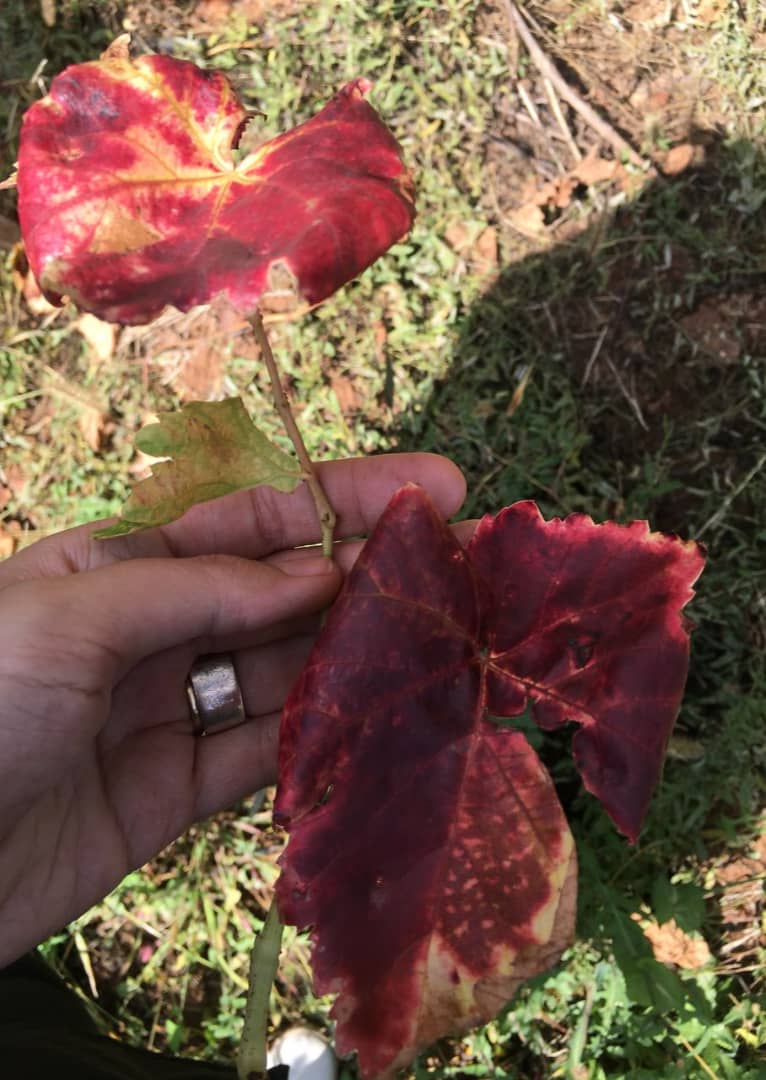 بیماری ویروسی پیچیدگی برگ انگور (Grape leafroll virus) که البته در تعداد کم بویژه در درختانی که مشکل شپشک آردآلود را داشتند دیده شد که این بیماری علاوه بر پیچیدگی و قرمزی برگ ها به مرور درخت را ضعیف و خشک میکند و کیفیت میوه کاهش پیدا میکند.
