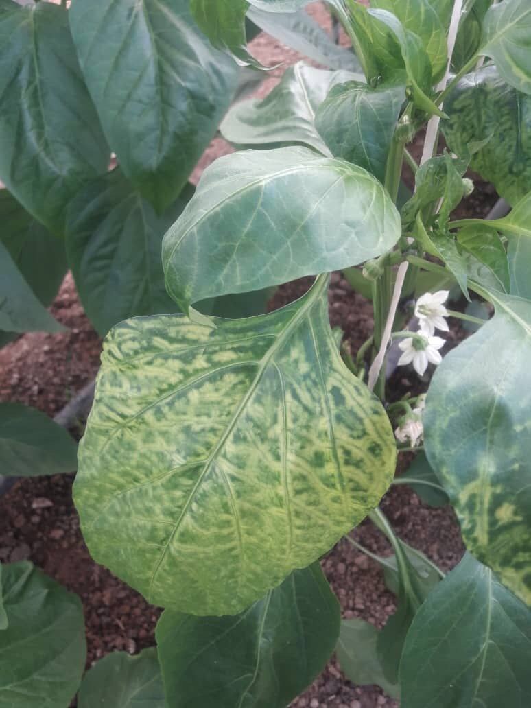 بدلیل وجود مشکل آفت تریپس و کنه در گلخانه متاسفانه انتقال بیماری ویروسی بسیار محتمل می باشد. تعداد ۲۰-۳۰بوته این مشکل را دارند که احتمال بیماری ویروسی را تقویت میکند و دائما روبه گسترش است. لذا علاوه بر کنترل آفات نامبرده لطفا با استفاده از اسیدهای آمینه و جلبک دریایی چه به صورت محلولپاشی (جهت تاثیر سریعتر) و چه آبیاری تا حدودی از استرس واردشده به گیاه بکاهید.