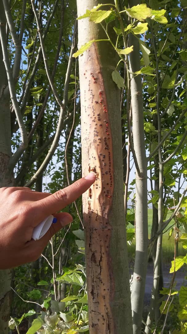 ✅خسارت فتیله نارنجی در درخت صنوبر و سپیدار که، خسارت آفتابسوختگی در تشدید ایجاد این علایم موثر است.