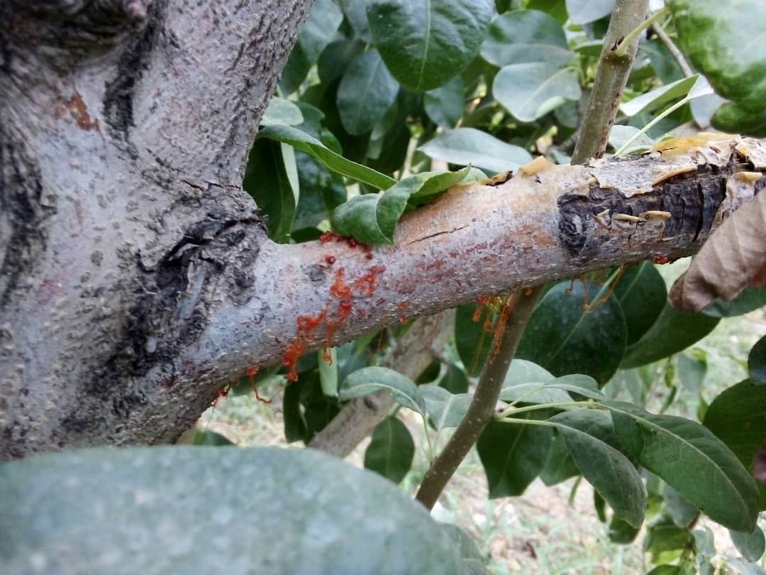 عامل این قارچ درست زیر پوست درخت هست و با افزایش رطوبت صمغ خارج میشود پس سمپاشی سموم تاثیر بسزایی ندارد ولی سموم سیستمیک مثل توپسین یک در هزار و سمومتماسی مثل ترکیبات مسی و مالیدن بردو با قلم مو در کنترل گسترش عامل بیماری موثر است.