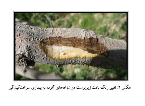 اولين بار بيماري سرخشكيدگي توسط امينايي و ارشاد (1368 ) در استان كرمان شناسايي و گزارش گرديد. آنها در تحقيقات خود از سر شاخه هاي آلوده، قارچ variotii Paecilomyces را جداسازي و به عنوان عامل بيماري معرفي كردند. تاكنون قارچ هاي variotii Paecilomyces ، marefignae و Ulocladium atrum ، Acremonium kiliense،Coniothyrium sp. ،Cytospora spp. aassnattfa از درختان مبتال به اين عارضه جدا شده اند. فراواني دو قارچ variotii Paecilomyces و .spp Cytospora در مقايسه با ساير قارچها بيشتر ميباشدكه بر اساس مطالعات انجام گرفته اين دو قارچ وmarefignae aassnattfa در شرايط گلخانه ای قادر به ايجاد سرخشكيدگي و شانكر در درختان پسته مي باشند. (عليزاده و همكاران ،1378؛ عاليي و همكاران ، 1377.)
